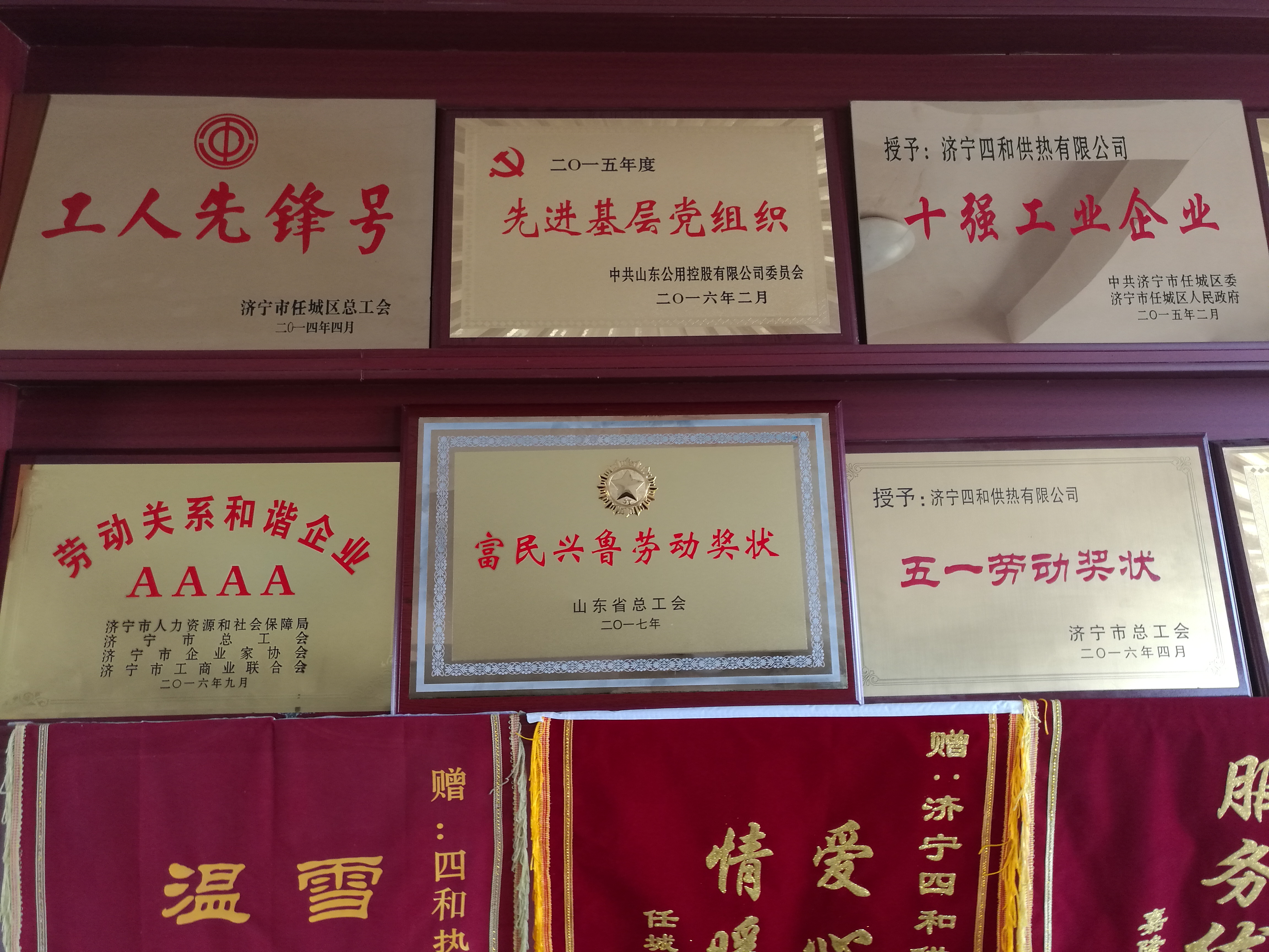 近年來,四和供熱公司憑借豐富的管理經(jīng)驗和良好的社會美譽度,通過了國際標(biāo)準(zhǔn)化組織制定的“質(zhì)量管理體系、環(huán)境管理體系、職業(yè)健康安全”三個體系一體整合認(rèn)證,先后榮獲山東省管理示范企業(yè)、山東省誠信企業(yè)、濟寧市第六屆關(guān)心國防建設(shè)十佳單位、“工人先鋒號”、濟寧市職業(yè)道德十佳集體、濟寧市稅收貢獻(xiàn)支柱企業(yè)、AAAA級勞動關(guān)系和諧企業(yè)等榮譽稱號,并連續(xù)六年被任城區(qū)政府評為城區(qū)“十強工業(yè)企業(yè)”。