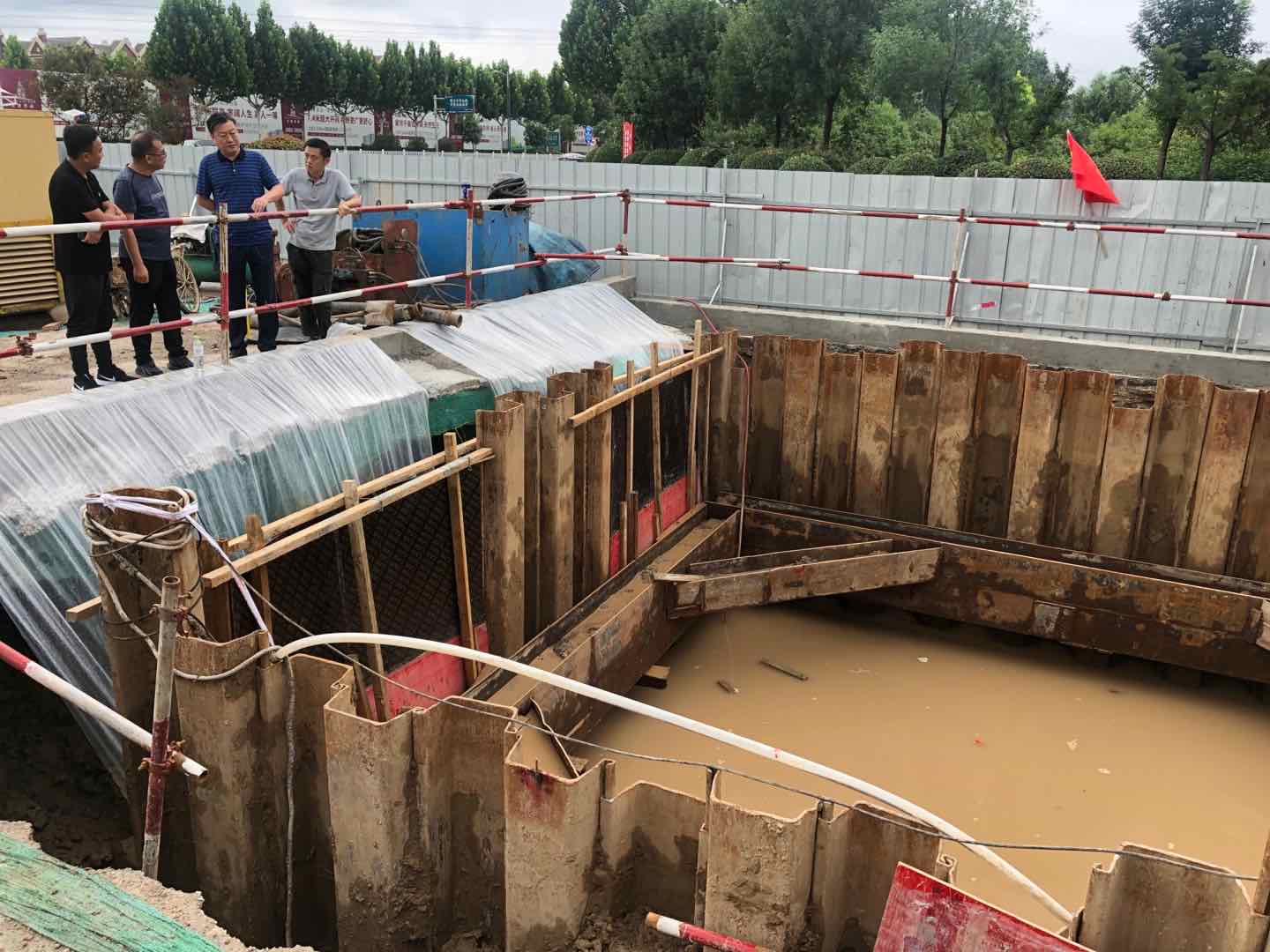 根據(jù)氣象部門(mén)暴雨紅色預(yù)警,濟(jì)寧地區(qū)未來(lái)一周還會(huì)有連續(xù)降雨。李聲播副書(shū)記指示各有關(guān)部門(mén)和工作人員務(wù)必做好工地積水的排水工作,完善施工作業(yè)面保護(hù)和溝槽的防汛措施,搶抓施工進(jìn)度,確保施工安全,安排好防汛值班工作,做好管道周邊泥土的處理及施工坑道的恢復(fù)工作。切實(shí)加強(qiáng)對(duì)防汛工作的組織領(lǐng)導(dǎo),強(qiáng)化落實(shí)防汛責(zé)任制,組建防汛搶險(xiǎn)隊(duì)伍,增強(qiáng)對(duì)突發(fā)事件的快速應(yīng)變能力,保證在緊要關(guān)頭拉得出、搶得上、守得住。同時(shí)狠抓汛前度汛設(shè)施隱患排查,積極做好入汛以來(lái)的各項(xiàng)準(zhǔn)備工作,為項(xiàng)目安全度汛奠定堅(jiān)實(shí)基礎(chǔ)。