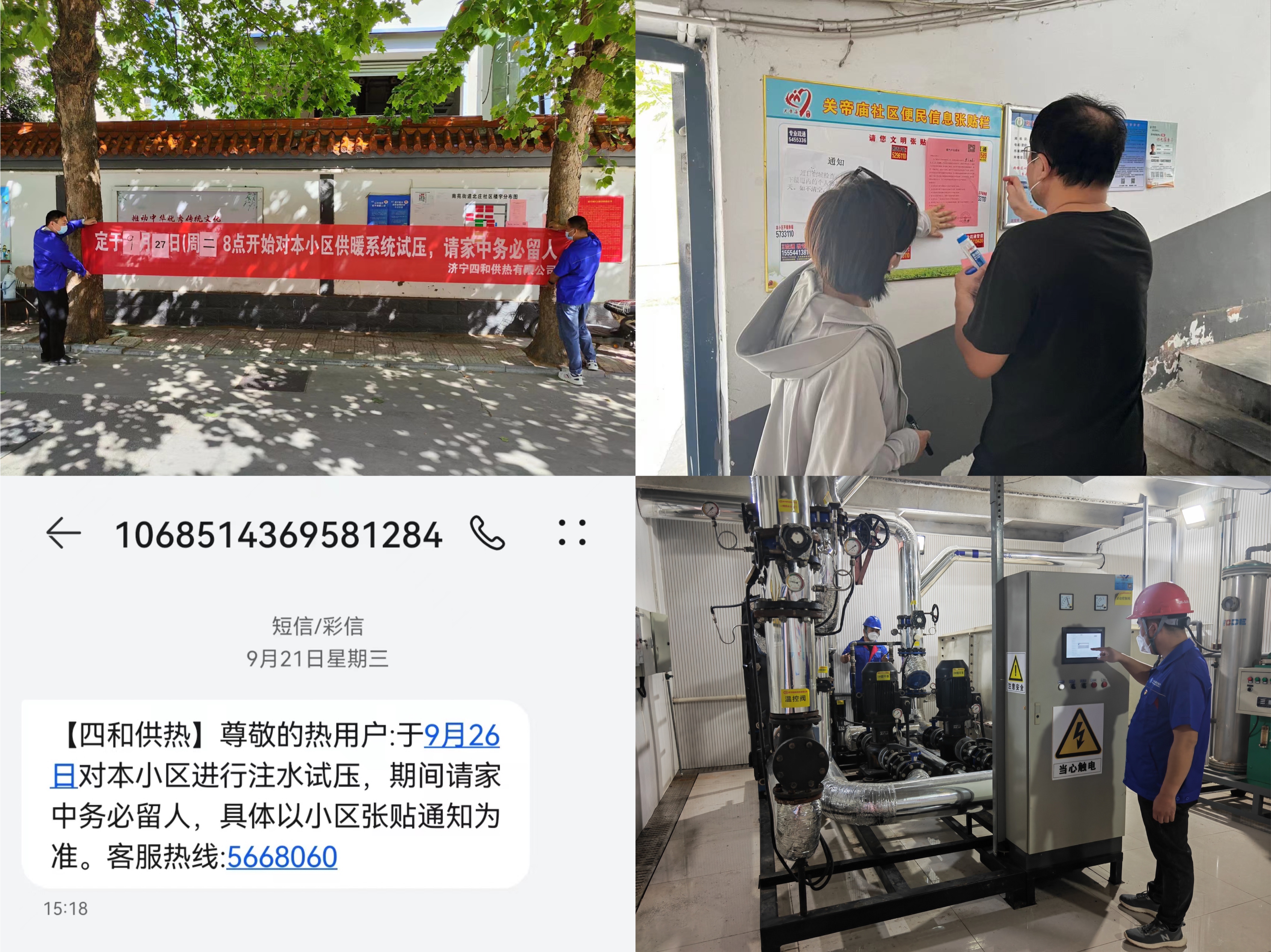 目前供暖打壓工作正在有條不紊的開展,濟寧四和供熱有限公司全體黨員干部職工將齊心協(xié)力做好供熱前期準備工作,切實為廣大熱用戶提供更高效、更優(yōu)質、更貼心的供熱服務。