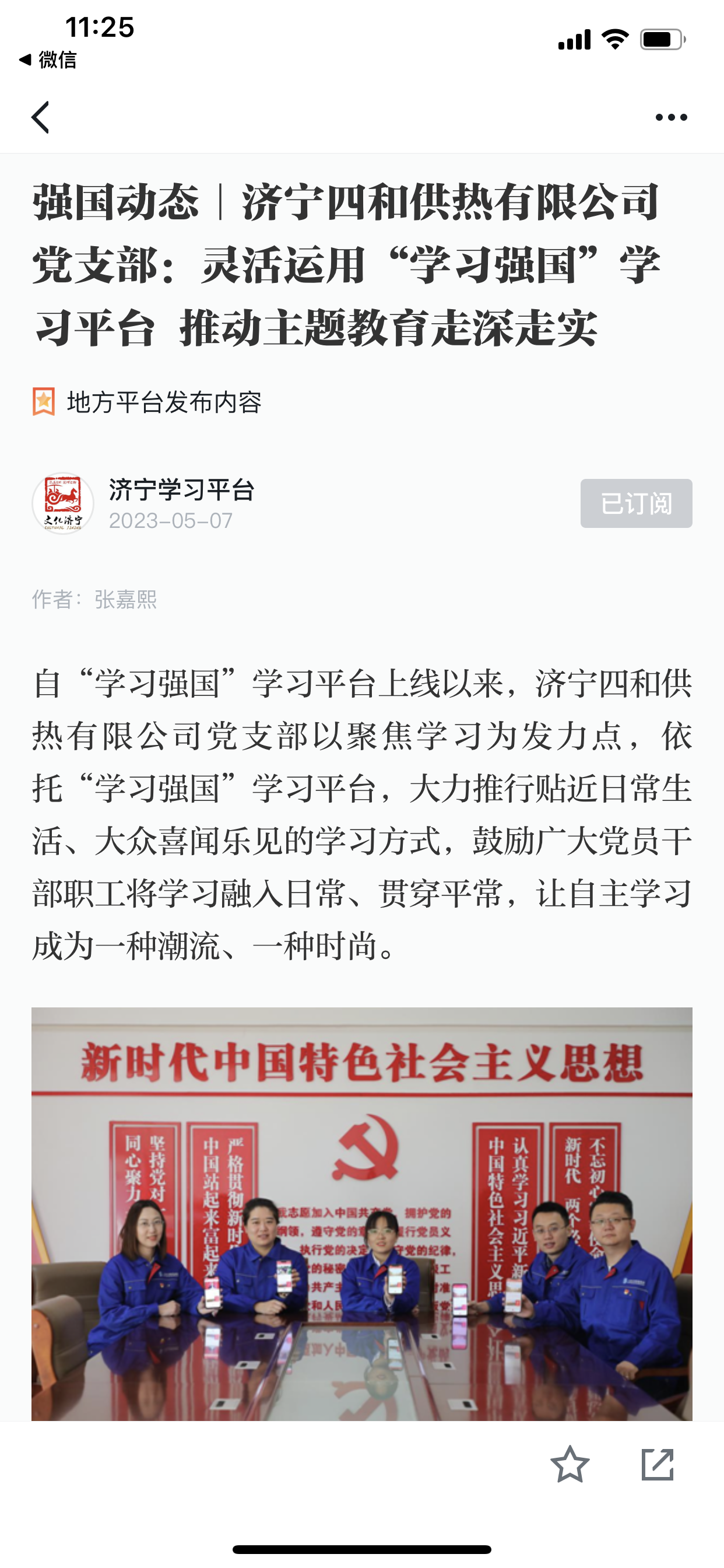 自“學(xué)習(xí)強(qiáng)國”學(xué)習(xí)平臺上線以來,濟(jì)寧四和供熱有限公司黨支部將開展宣傳推廣工作作為一項(xiàng)重要的政治任務(wù),以聚焦學(xué)習(xí)為發(fā)力點(diǎn),依托“學(xué)習(xí)強(qiáng)國”APP,大力推行貼近日常生活、大眾喜聞樂見、更容易接受的手機(jī)刷屏線上學(xué)習(xí)模式,每天堅(jiān)持打卡學(xué)習(xí),使其成為激發(fā)學(xué)習(xí)興趣的妙訣,提高學(xué)習(xí)主動性的法寶,鼓勵(lì)廣大黨員干部職工將學(xué)習(xí)融入日常、貫穿平常,充分利用業(yè)余時(shí)間持續(xù)充電蓄能,讓自主學(xué)習(xí)成為一種潮流、一種時(shí)尚。