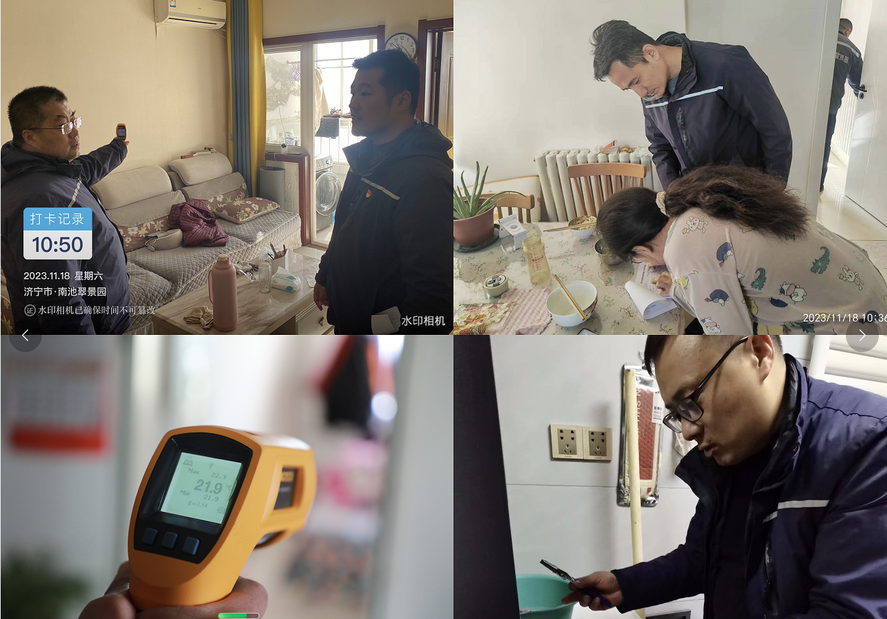活動(dòng)開始前,四和供熱黨支部書記向全體黨員闡述了此次活動(dòng)的意義和目的,明確了活動(dòng)的要求和安排,表達(dá)了為用戶提供優(yōu)質(zhì)供熱服務(wù)的堅(jiān)定決心和信心。隨后,領(lǐng)導(dǎo)班子成員帶隊(duì)前往九九花園、鳳凰城、水韻城等多個(gè)供熱轄區(qū)開展入戶走訪活動(dòng),并對邊角樓頭、頂層及底層用戶進(jìn)行重點(diǎn)摸排走訪。在入戶走訪的過程中,黨員志愿者們主動(dòng)亮身份、當(dāng)先鋒,積極認(rèn)領(lǐng)工作任務(wù),分組分樓逐一開展排查,現(xiàn)場測量室內(nèi)溫度、詢問用戶家中供熱情況,幫助用戶檢修室內(nèi)采暖設(shè)施,面對面、心貼心地與用戶進(jìn)行“零距離”溝通交流,傾聽記錄用戶的意見建議,為用戶講解供熱相關(guān)的知識(shí)和注意事項(xiàng),積極宣傳推廣“濟(jì)時(shí)熱”小程序,讓用戶體驗(yàn)更加快捷、高效的報(bào)修服務(wù)。同時(shí)發(fā)放集合了水、電、氣、暖等多種民生服務(wù)聯(lián)絡(luò)方式于一體的最新優(yōu)化升級的綜合便民服務(wù)卡,方便用戶咨詢解決各類訴求問題。