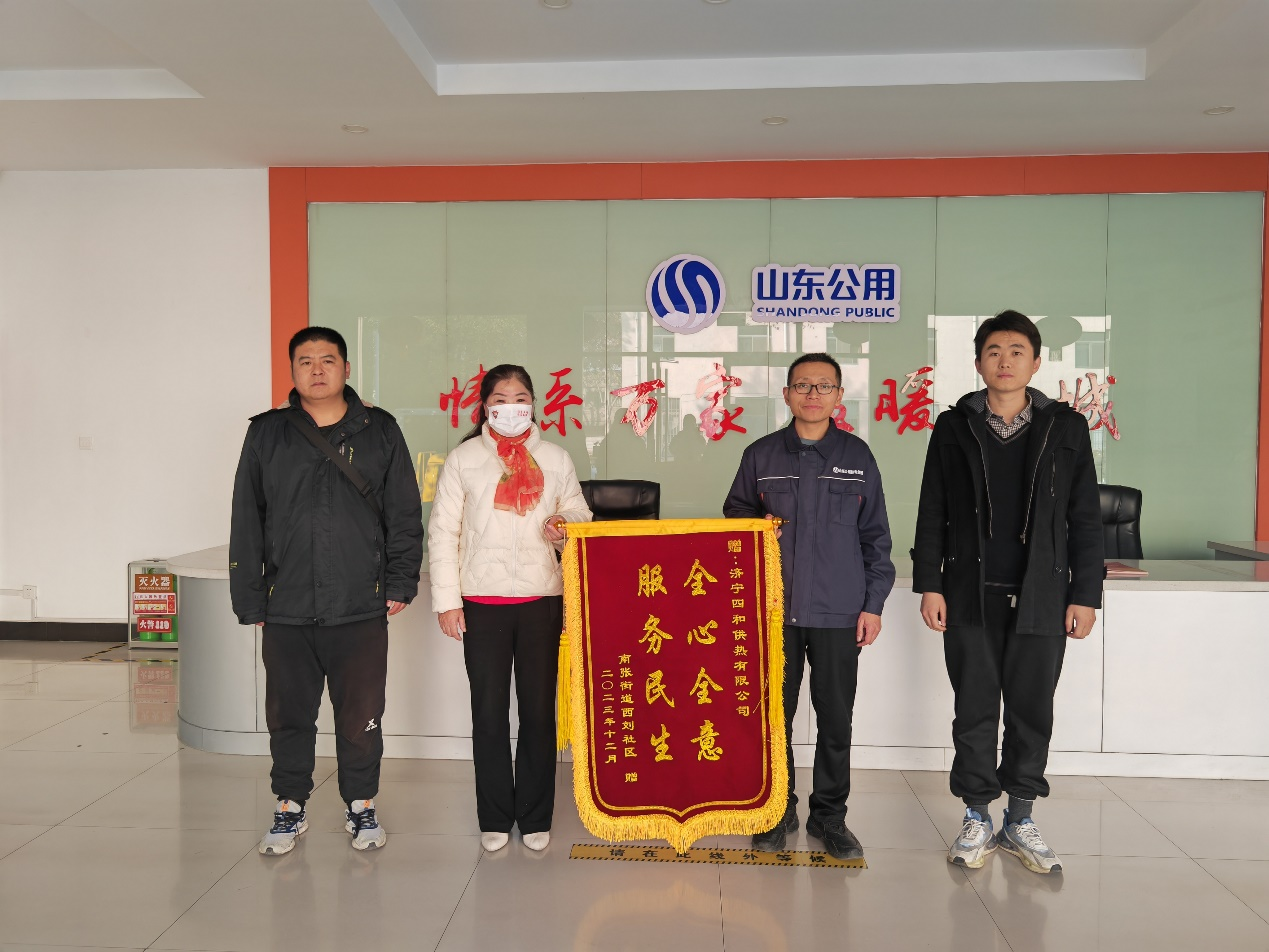 12月5日下午,南張街道西劉社區(qū)的負(fù)責(zé)人將一面印著“全心全意,服務(wù)民生”的錦旗送到了濟(jì)寧四和供熱公司,誠(chéng)摯地對(duì)四和供熱公司的周到服務(wù)以及供熱六區(qū)網(wǎng)格員朱道新的認(rèn)真負(fù)責(zé)表示感謝。