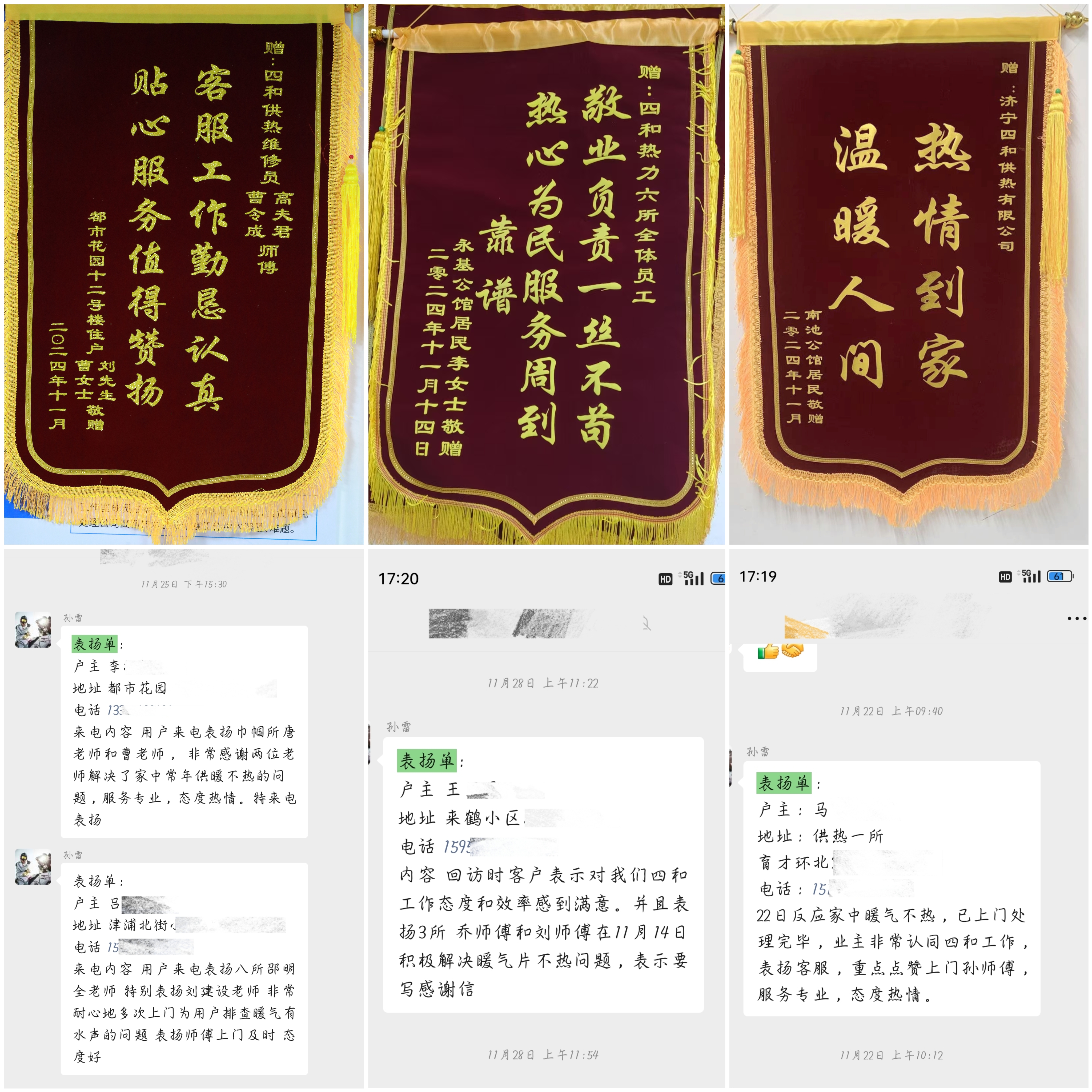 此次活動贏得熱用戶廣泛贊譽,多個供熱區(qū)域獲贈錦旗和表揚,這不僅是對四和供熱公司民生保障工作的充分肯定,更是對全體黨員干部職工辛勤付出的有力見證,承載著廣大用戶對溫暖冬日的殷切期望。下一步,濟(jì)寧四和供熱有限公司將繼續(xù)秉持為民服務(wù)的初心,優(yōu)化供暖質(zhì)量,提升服務(wù)水平,常態(tài)化開展 “訪民問暖” 工作,切實讓冬日暖流常伴用戶左右。